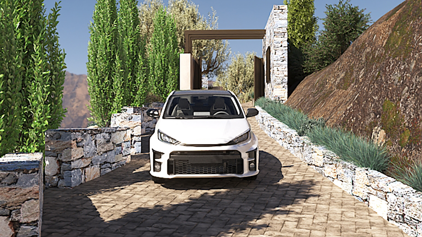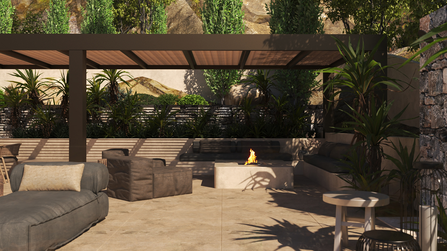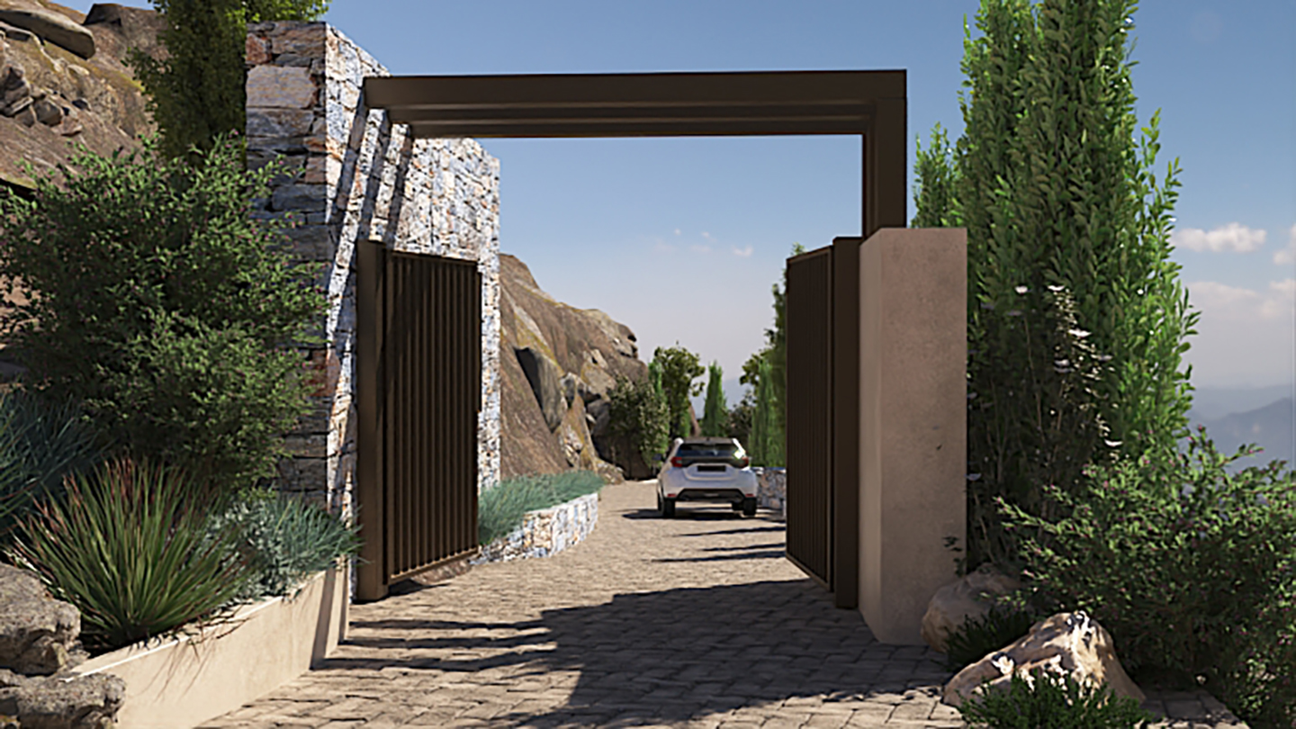 Η κύρια κρεβατοκάμαρα, το σαλόνι και το εξωτερικό καθιστικό διατάσσονται γύρω από την πισίνα προσφέροντας μια ανεπανάληπτη εμπειρία διαμονής. Το τζακούζι με τη θέα και η σάουνα προσθέτουν στην πολυτελή διαμονή. Η επιδίωξη μας ήταν να παρέχουμε με άνεση και πολυτέλεια την εμπειρία του βουνού και τις θάλασσας σε ένα ιδιαίτερο και προστατευμένο περιβάλλον.